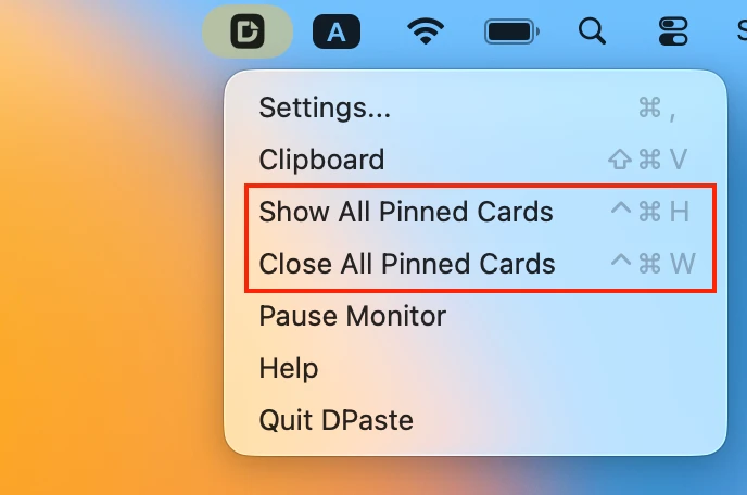 ⌘ + ⌃ + H:显示/隐藏所有钉住窗口 - 通过菜单栏菜单操作显示/隐藏